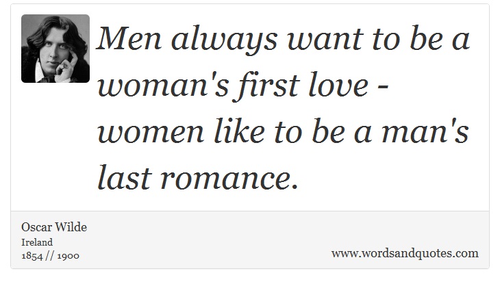 Men always want to be a woman's first love - women like to be a man's last romance.